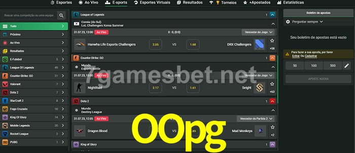 O OOpg oferece uma grande seleção de opções de apostas em e-sports com probabilidades competitivas